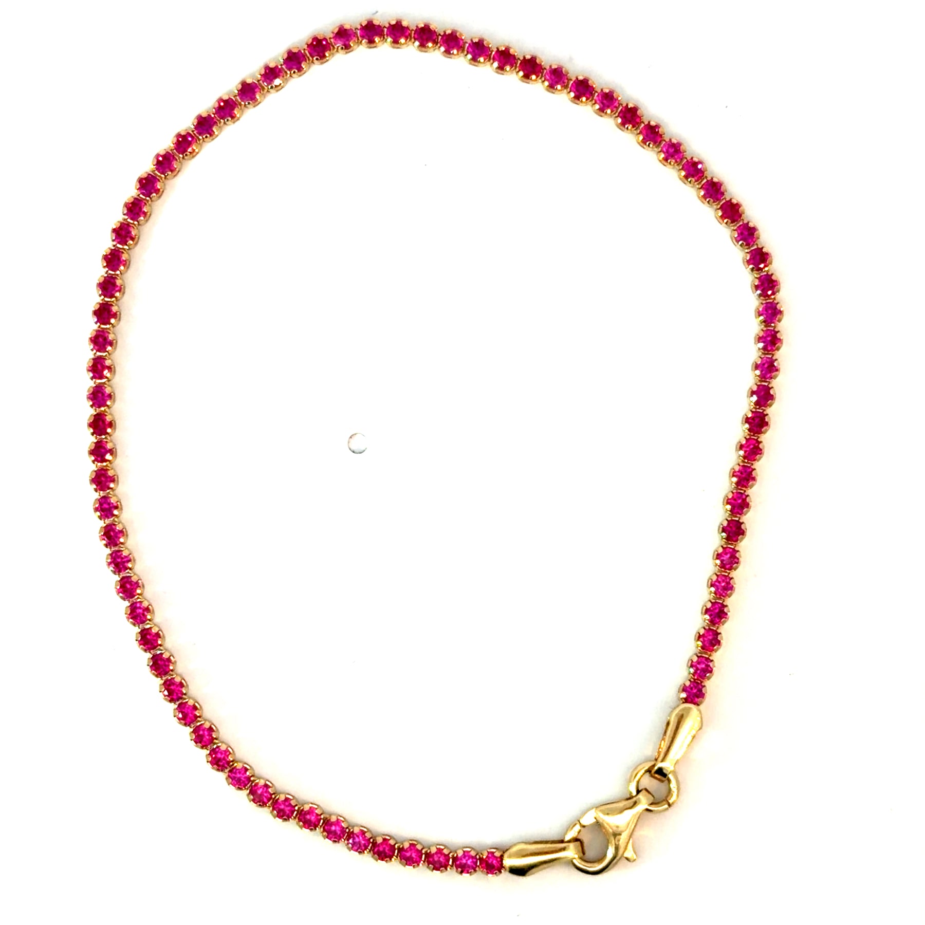 Elevate your style with our 14k Gold Fuchsia Tennis bracelet, this piece is a must-have.
